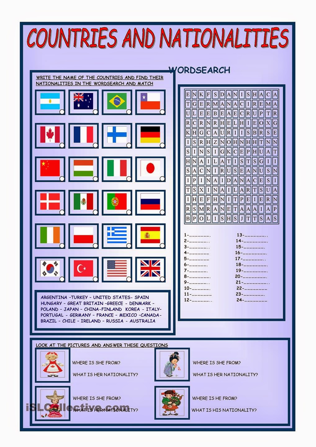 Countries, Nationalities, Languages and Flags- Where are you from?